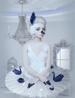 Natalie son una mezcla de su fotografía, pintura digital y elementos 3D.
